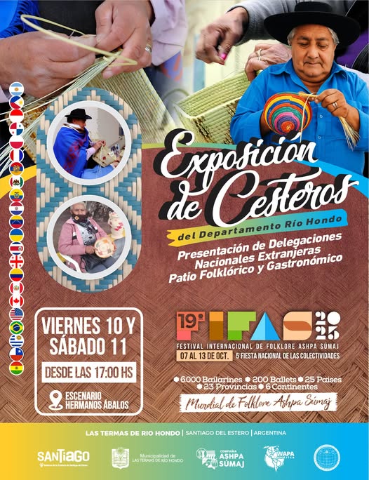 EXPOSICIÓN DE CESTEROS durante el #fifas2025 En el marco del Festival Internacional De Folclore "Ashpa Súmaj" en uno de sus #Tres Escenarios, el Hermanos Abalos (frente al #CentroCultural) habrá una MUESTRA DE PARTE DE LOS CESTEROS DE NUESTRA CIUDAD,...