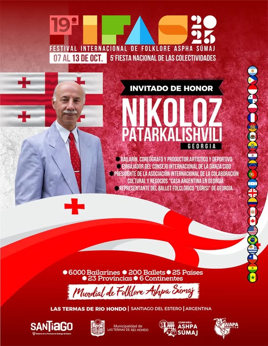 Bailarin, Coreografo y Productor Artistico y Deportivo, Embajador del Consejo Internacional de la Danza CIDD, Presidente de la Asociacion Internacional de la colaboracion Cultural y Negocios “Casa Argentina en Georgia, Representante del Ballet Folclorico “Egrisi” de Georgia.